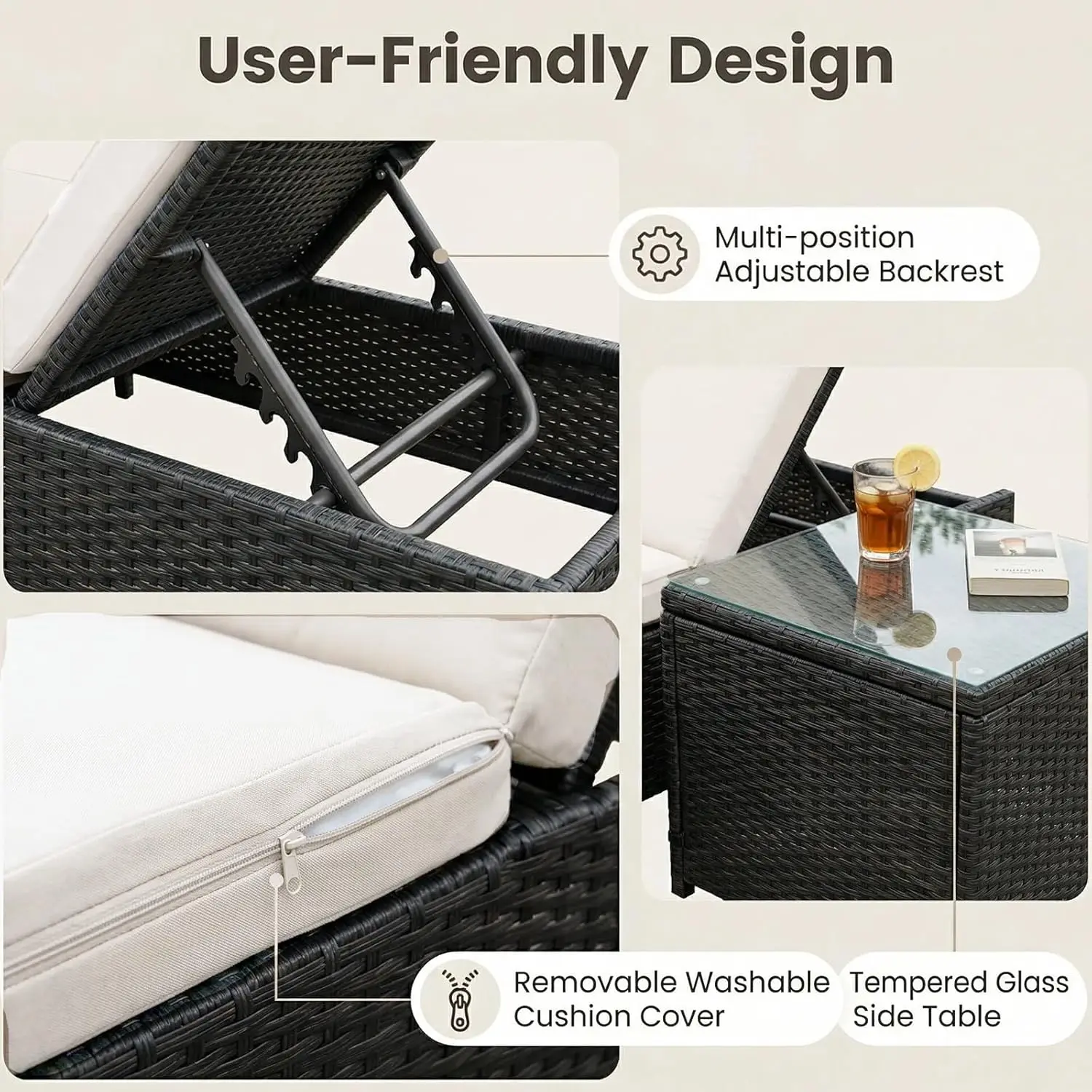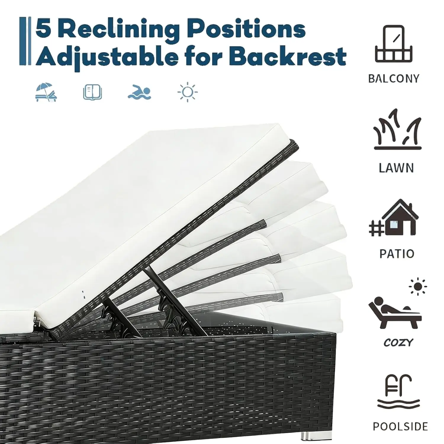 Comfortable And Large Weight Capacity: The chaise lounge outdoor features a spacious design fits all body types and supports up to 350 LBS.Crafted with a strong rust-resistant steel frame and welded firmly for durability.