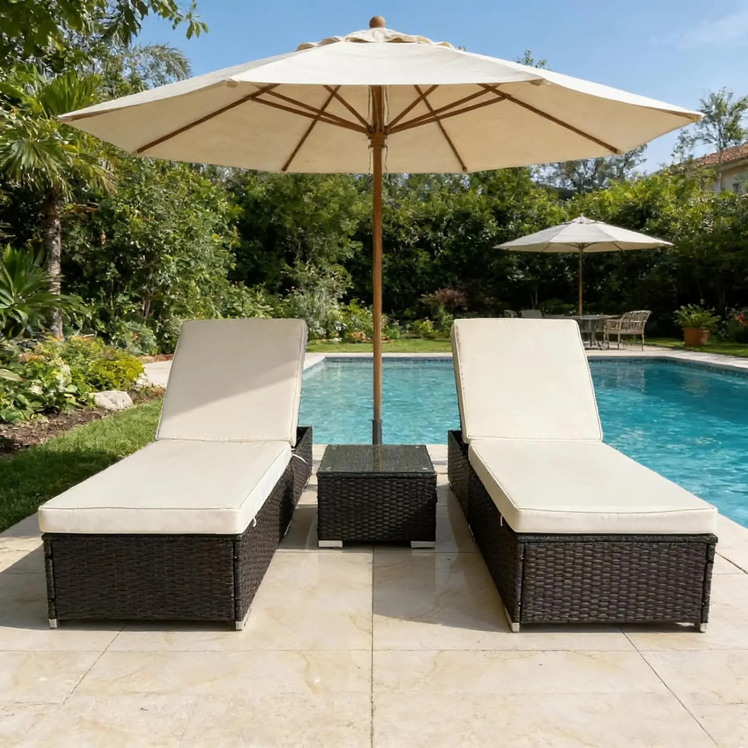 Easy To Clean:Our pool lounge chairs are designed for ease of cleaning. The PE outer skin and powered coated steel frame can simply be washed down with a hose or wiped with a damp cloth. These waterproof cushion covers feature zippers, making them easy to remove for washing.